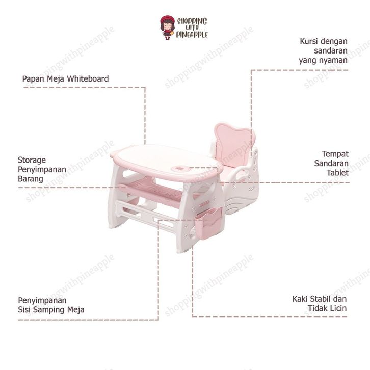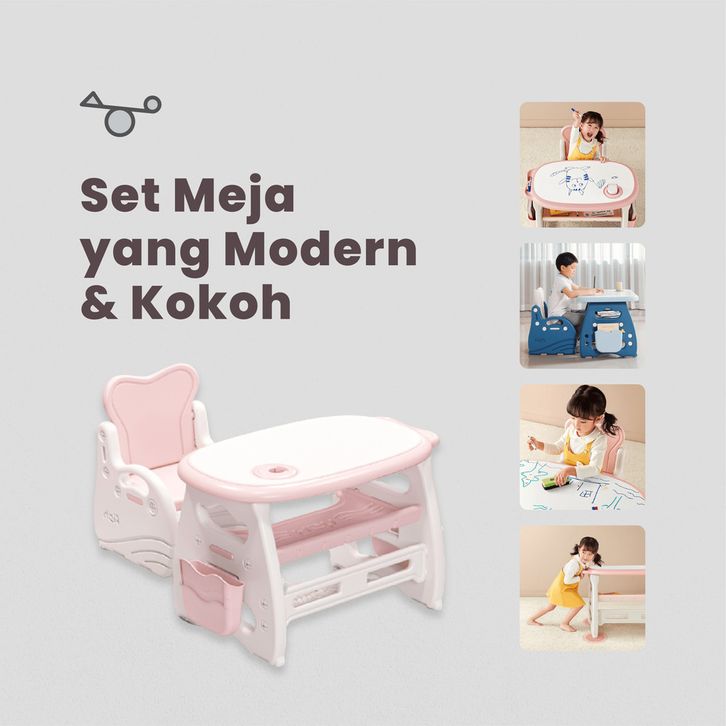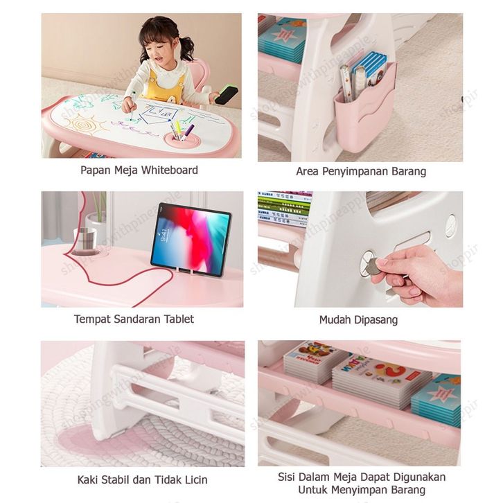 SWP - Set Meja Belajar Anak Fish/ Meja Belajar Anak Multifungsi / Meja Belajar Papan Tulis / Set Meja Papan Tulis Multi