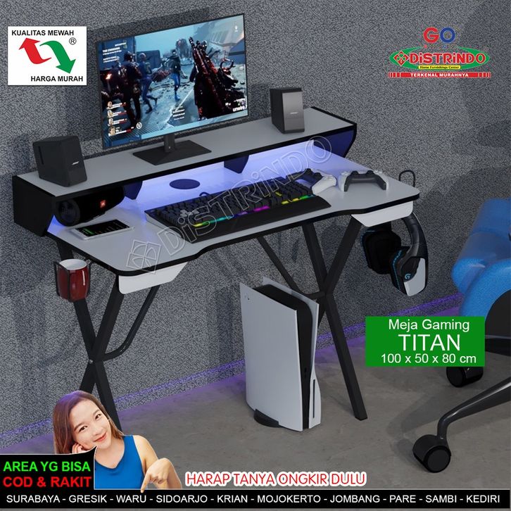 Meja Gaming / Meja Laptop Minimalis / Meja Belajar Kaki Besi