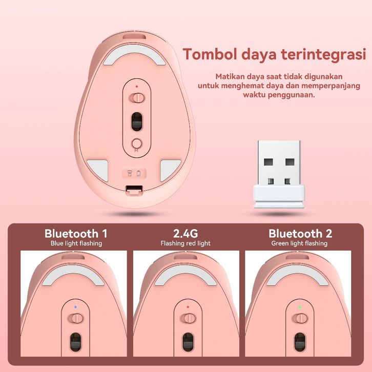 Jovitech MW08 Mouse USB Wireless Bluetooth 2.4G Ergonomic Silent Click Rechargeable Dual-M0De Mouse untuk Ponsel Laptop