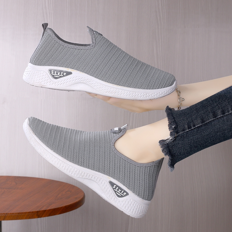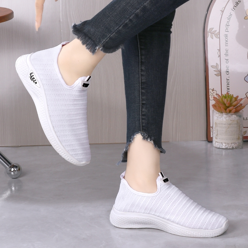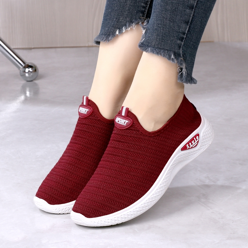 SEP104 (TANPA KOTAK) SEPATU WANITA MOTIF BUNGA 7 WARNA BAHAN RAJUT RINGAN