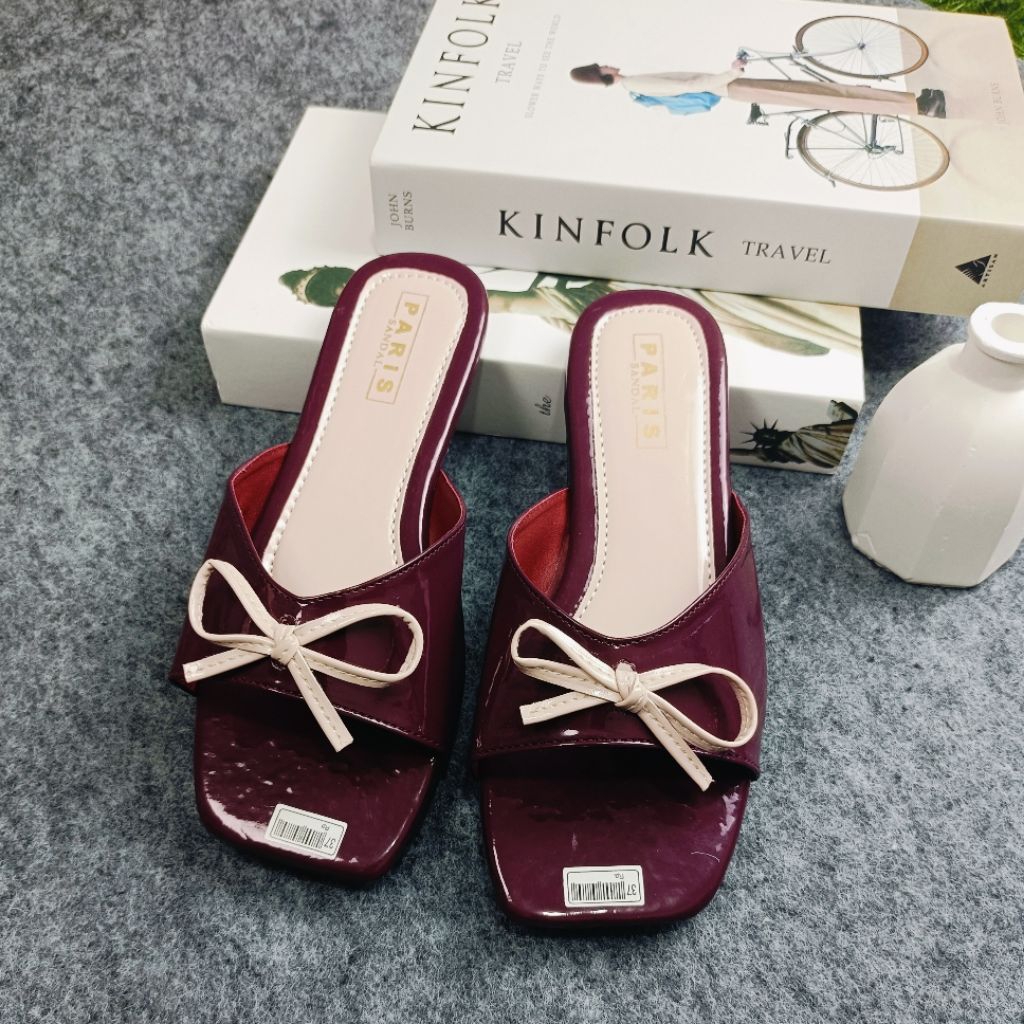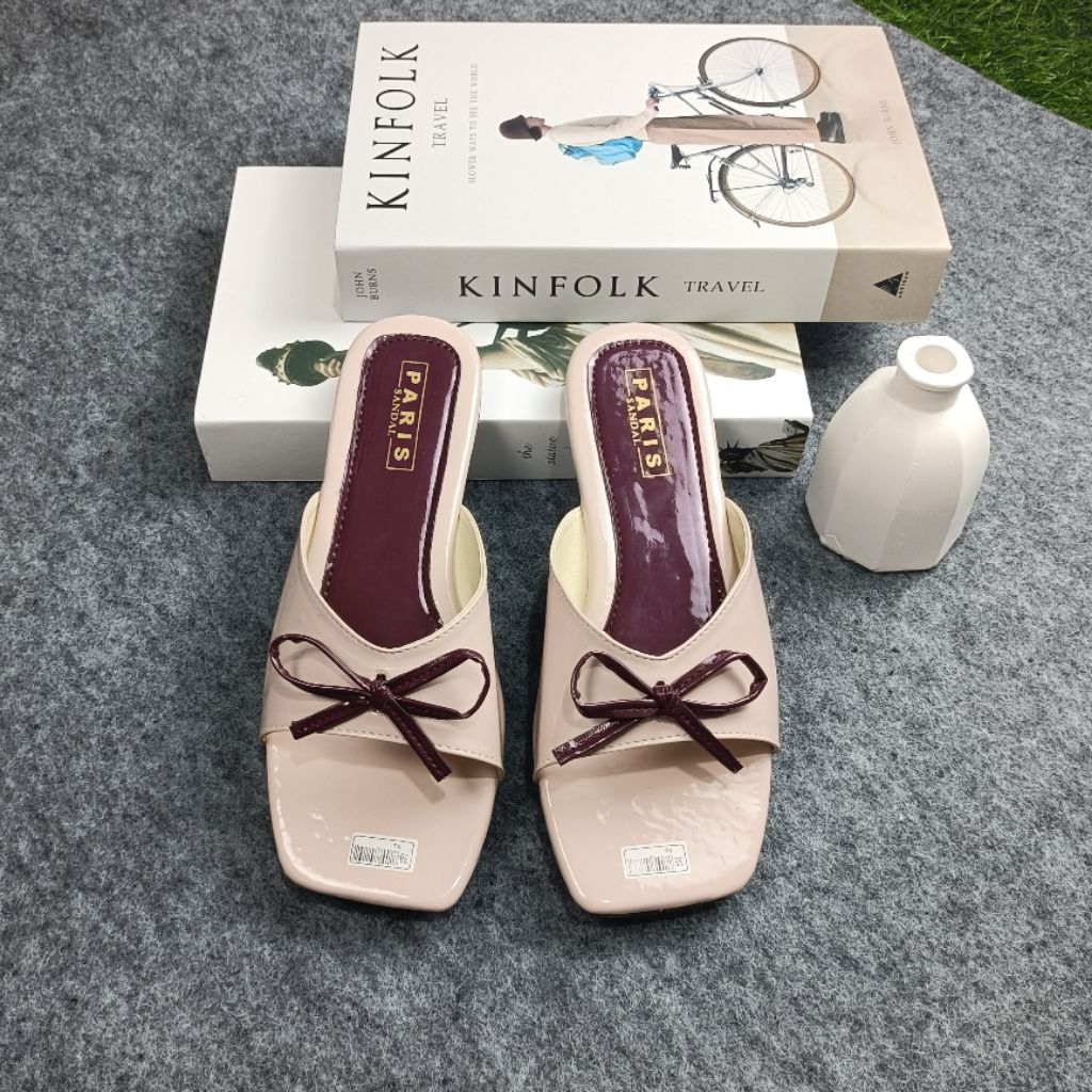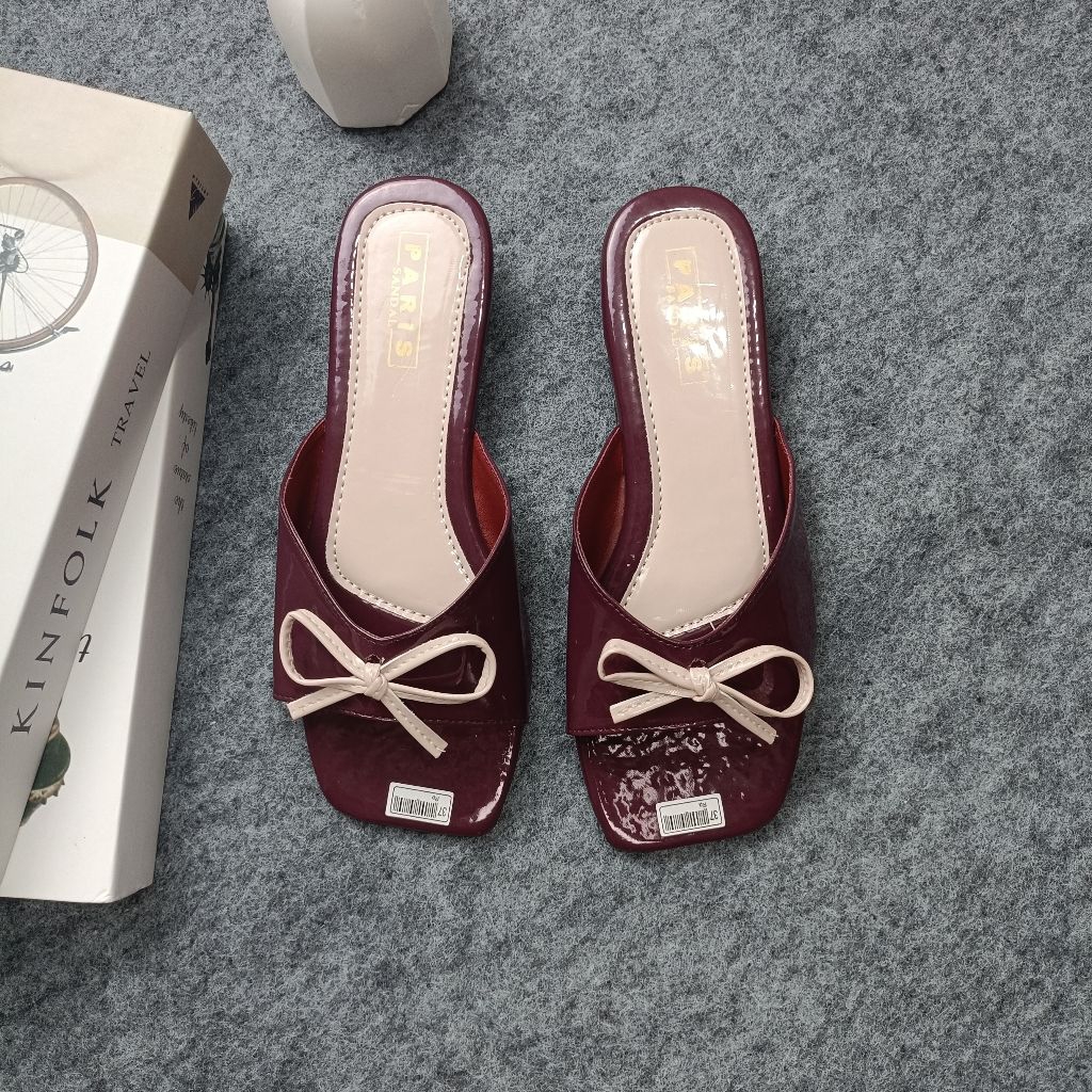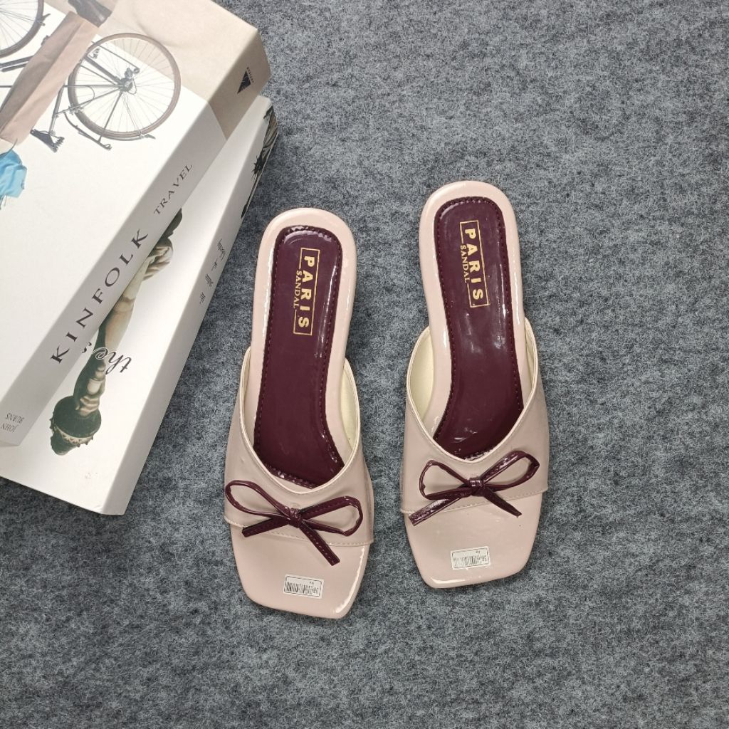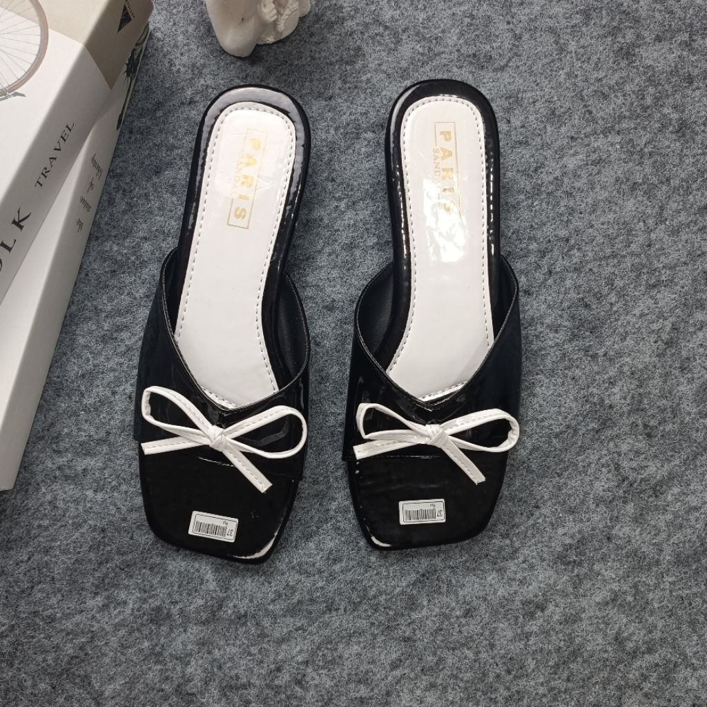 PARISSANDAL SHOES - Sandal Teplek Wanita Glossy Slop Tali Pita Kombinasi Casual Kekinian