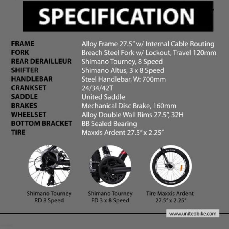 SEPEDA MTB 275 UNITED STAVROS FRAME ALLOY 24SPEED SEPEDA GUNUNG