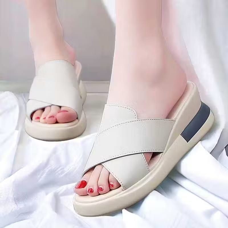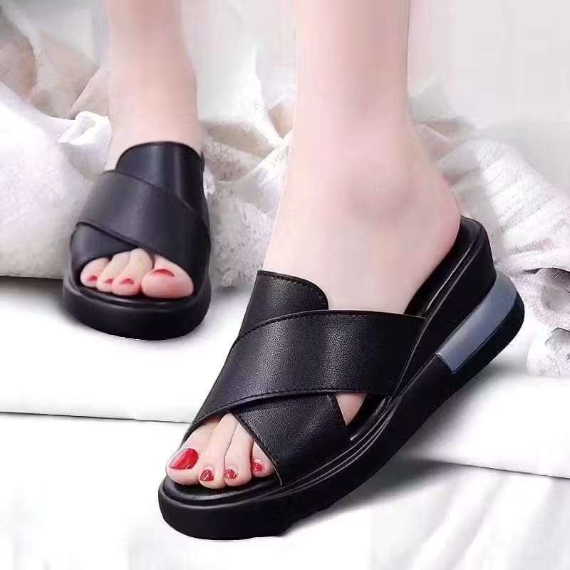Sandal Wanita Slop Slip on Terbaru Sandal Wanita Model Korean Style Terlaris Sandal Wedges Wanita Kekinian 2024