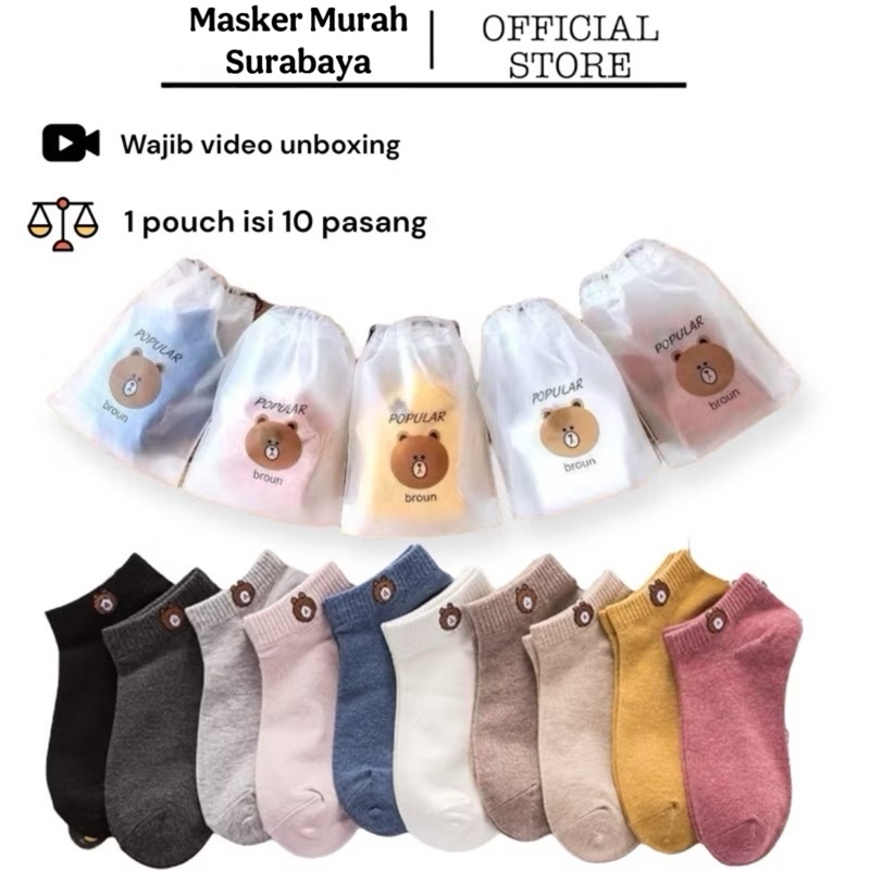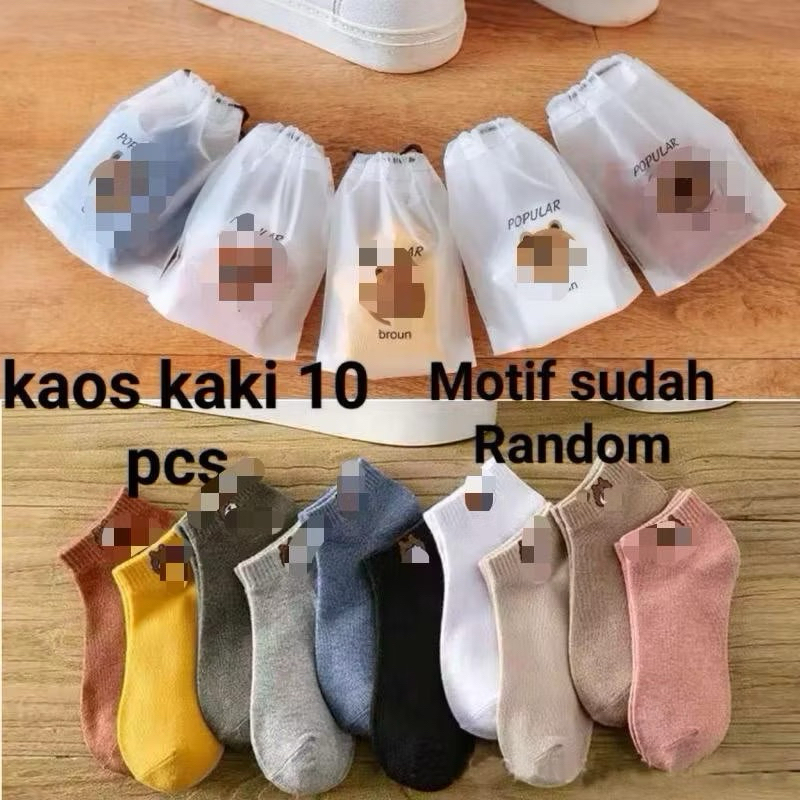 10pcs Kaos Kaki Polos Motif Beruang Pouch Isi 10 Pasang MIX WARNA