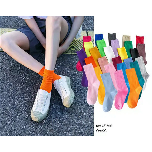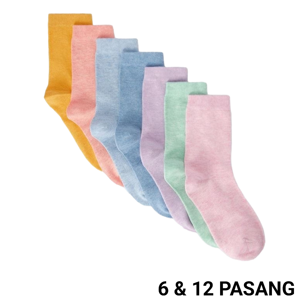 12 Pasang Kaos Kaki Wanita Cewek Warna Polos Panjang Random
