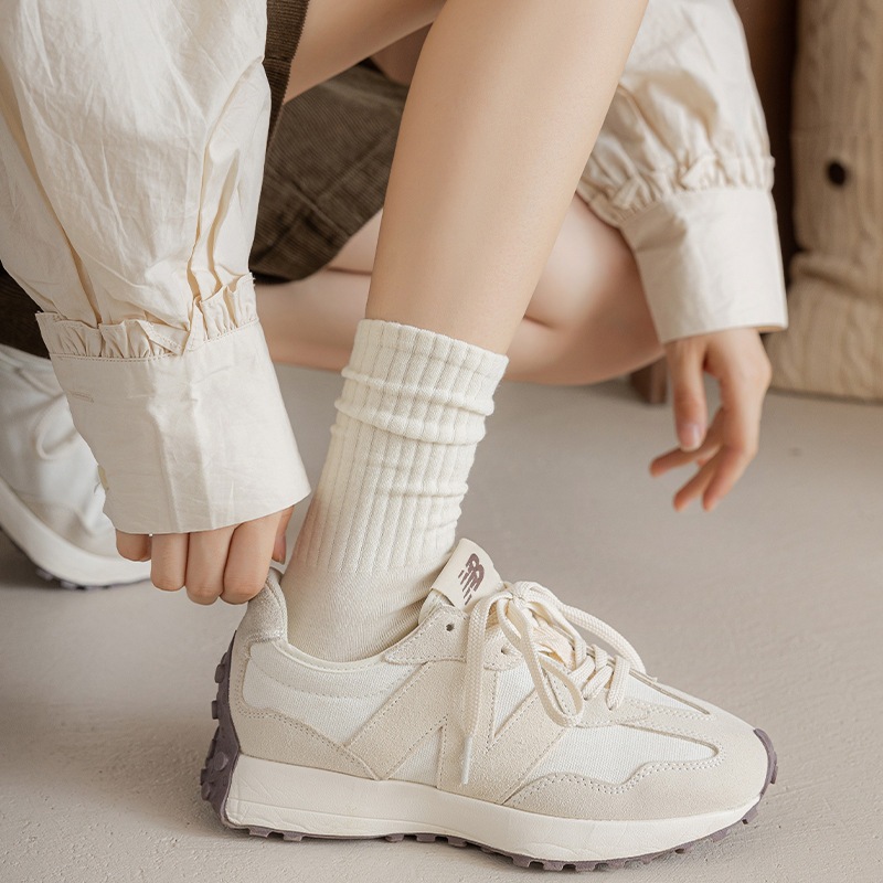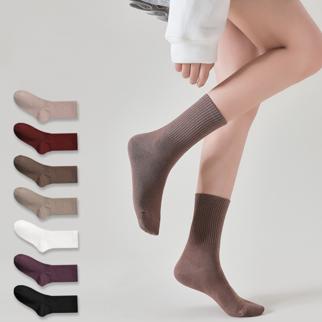 Woomy - KK515 Kaos Kaki Panjang Wanita Vertical Stripes Solid Color Women Sock