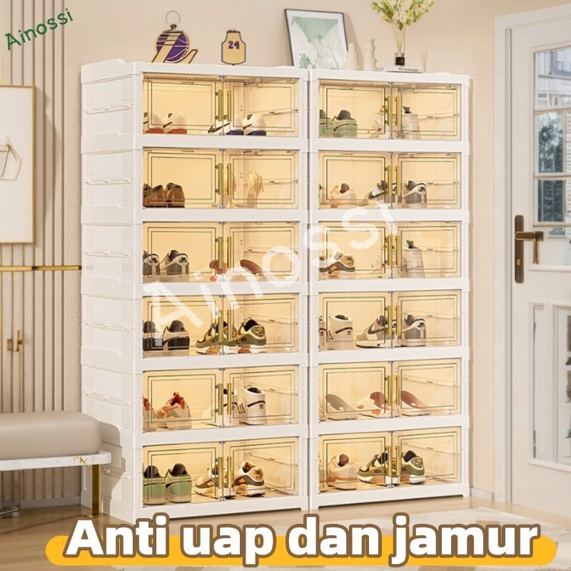 AINOSSI Kotak Sepatu Ukuran Ekstra Bebas Instalasi Shoe Storage Boxes Lipat dan Simpan Multifungsi Lemari Sepatu Tertutu