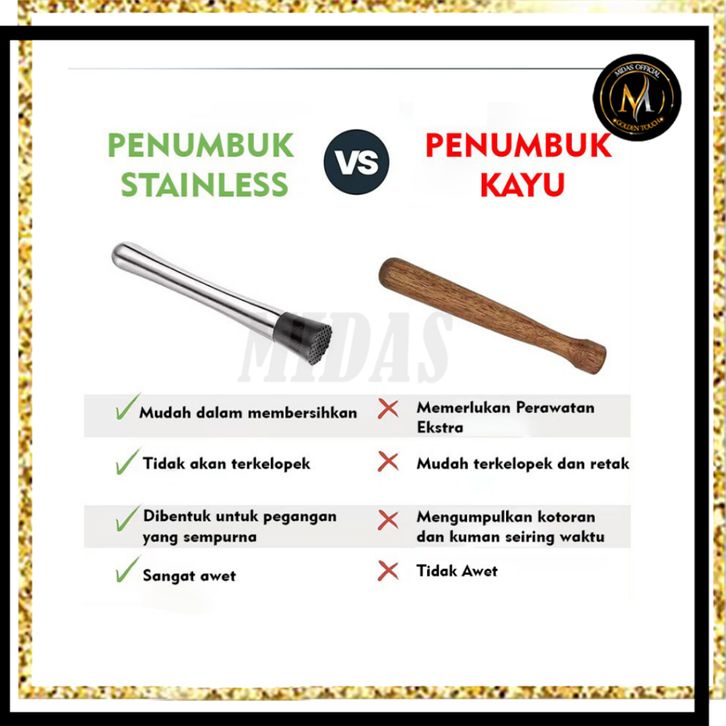 Penumbuk Ulegan Buah Es Batu Bawang Untuk Minuman Bahan Stainless Steel Tahan Karat Dijamin Awet / Muddler Cocktail Ice