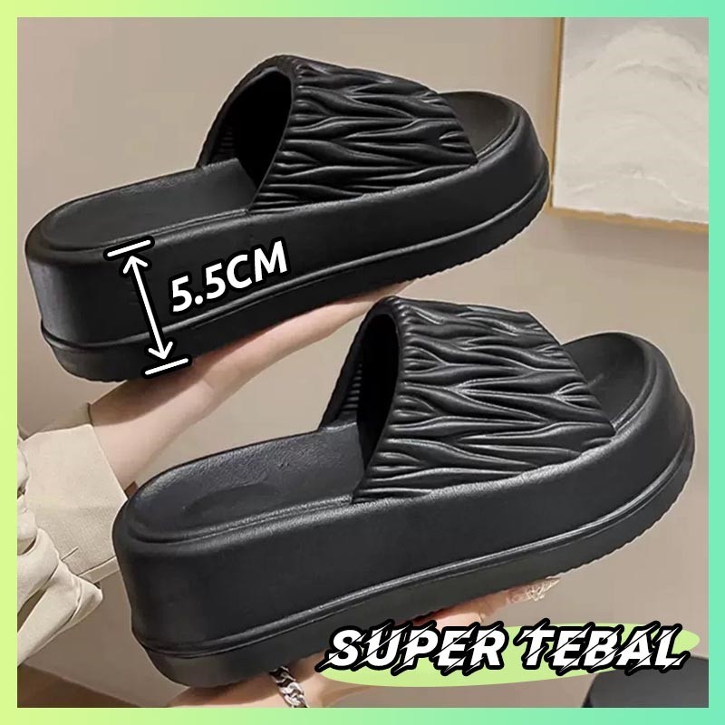 Yink Sandal Wanita Terbaru Wedges Tinggi 5Cm Korea Premium Fashion Eva Sendal Karet Wanita Jelly Kekinian Casual Tebal