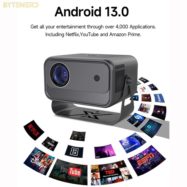 ByteNerd New CY900 Projector 250 ANSI Lumens 1080P Android 13 Portable Smart Proyektor Auto Focus Projector Support 4K