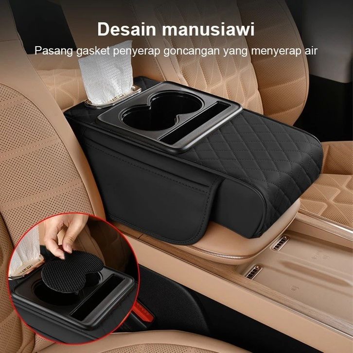 4 In 1 Armrest Hand Rest Sandaran tangan Mobil Kotak Tisu Cup Holder Cushion Cover Pad Leather Car Seat Armrest