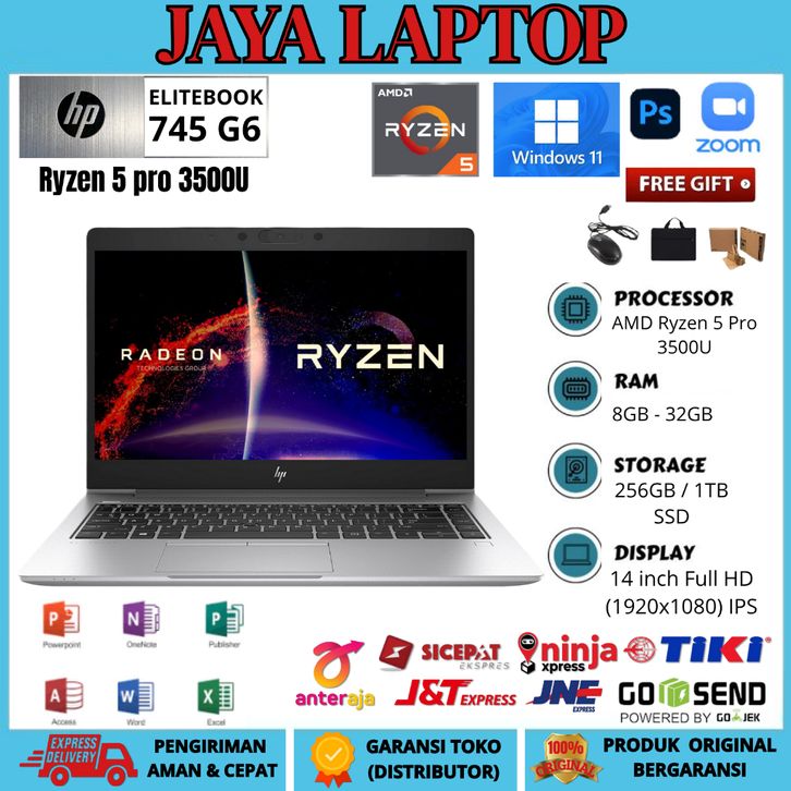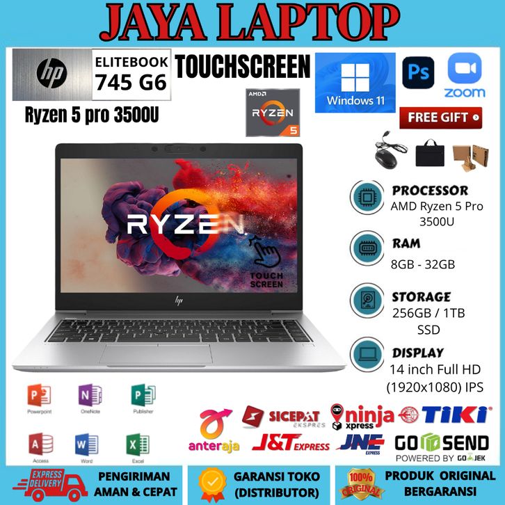 READY STOK HP Elitebook 745 G6 Ryzen 5 Pro 3500U TOUCHSCREEN 14 INCH FHD RAM 32GB/1TB FREE TAS DAN MOUSE KONDISI MULUS