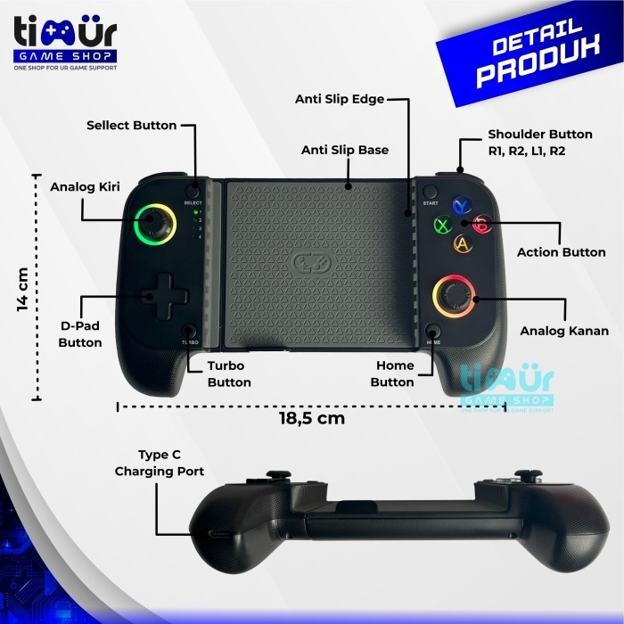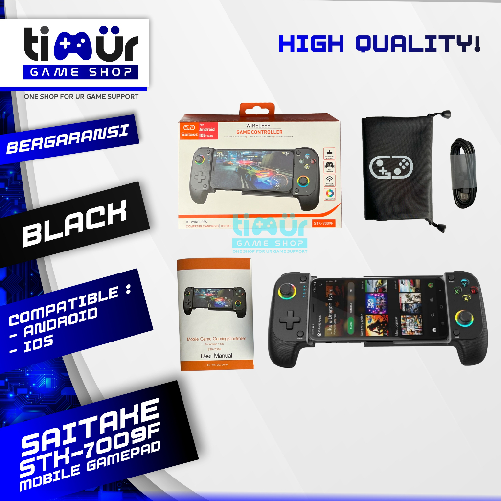 Stick Stik Game Controller Gamepad Android IOS Mobile HP Wireless Bluetooth RGB SAITAKE 7009F Hitam