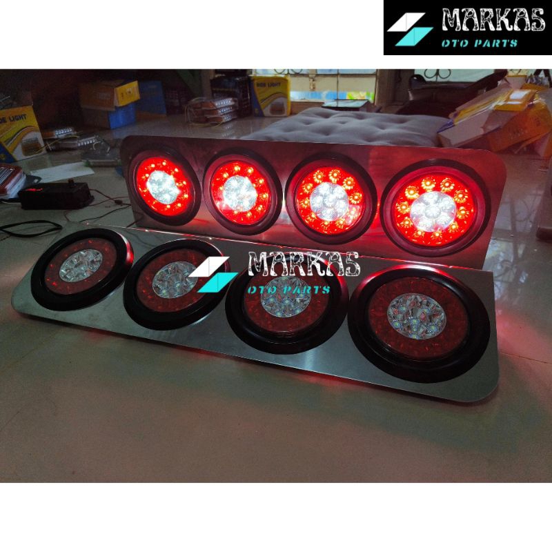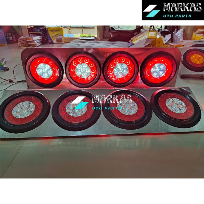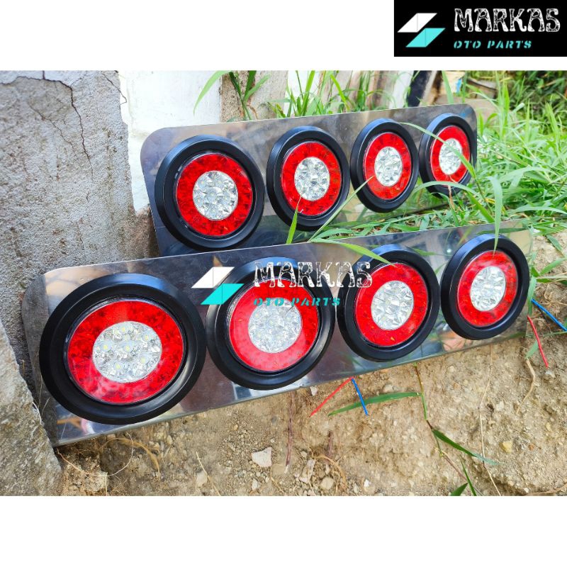 Sepasang Lampu Led Stop Lamp Truck 12volt - 24volt Model 403 / 303 Stainless Merah Putih Lampu Rem Belakang Truk Variasi