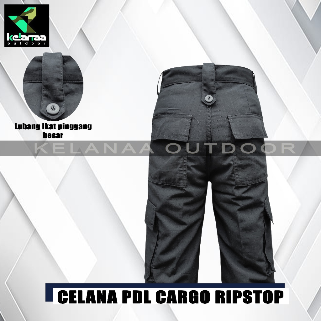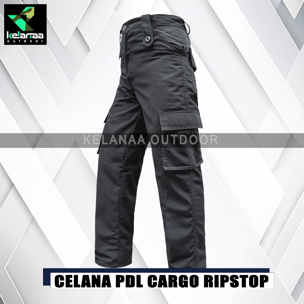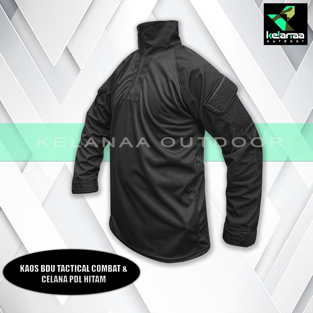SATU SET SETELAN BAJU KAOS BDU TACTICAL LORENG HITAM CELANA PANJANG PDL CARGO BLACK RIPSTOP UNISEX