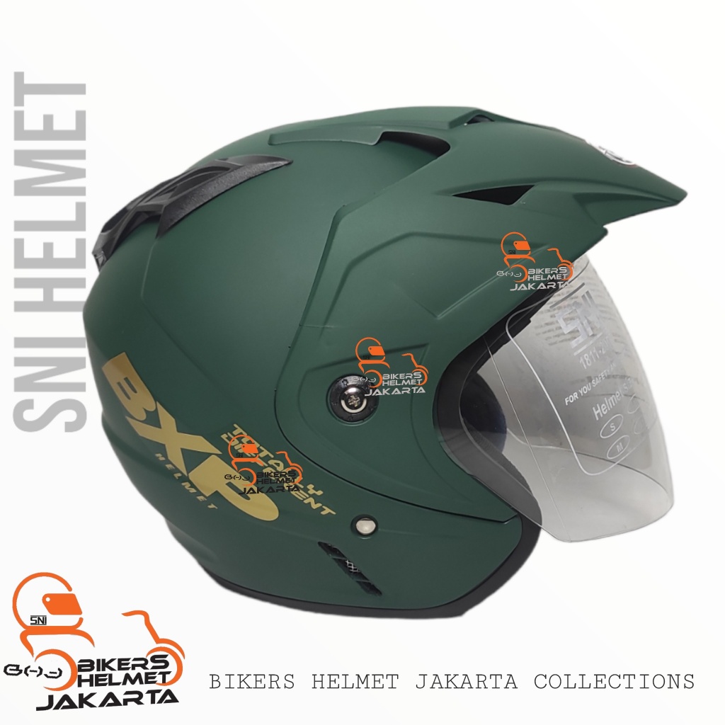 GODZILLA HELM BXP SOLID ARMY DOFF HALF FACE MURAH SINGLE VISOR