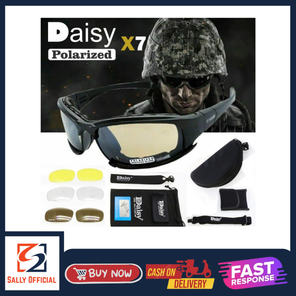 Daisy x7 Anti UV 4 lensa Set Kacamata Sunglasses Police Military Tactical