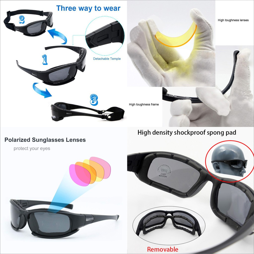 Kacamata Sunglasses Police Military Tactical Daisy x7 Polarized Anti UV 4 lensa