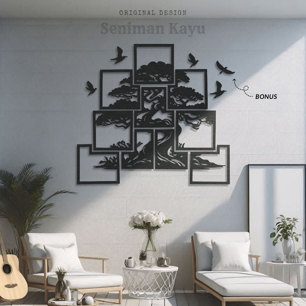 Pajangan Dinding Aesthetic Kayu Tempel Hiasan Kamar Pria Wanita Dekorasi Ruang Tamu Rustic Pohon