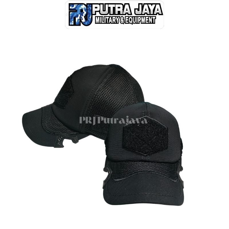 Topi Tactical Coak Hitam Cotton Kombinasi Double Mess Jaring | Topi Coak Hitam Combinasi Terbaru