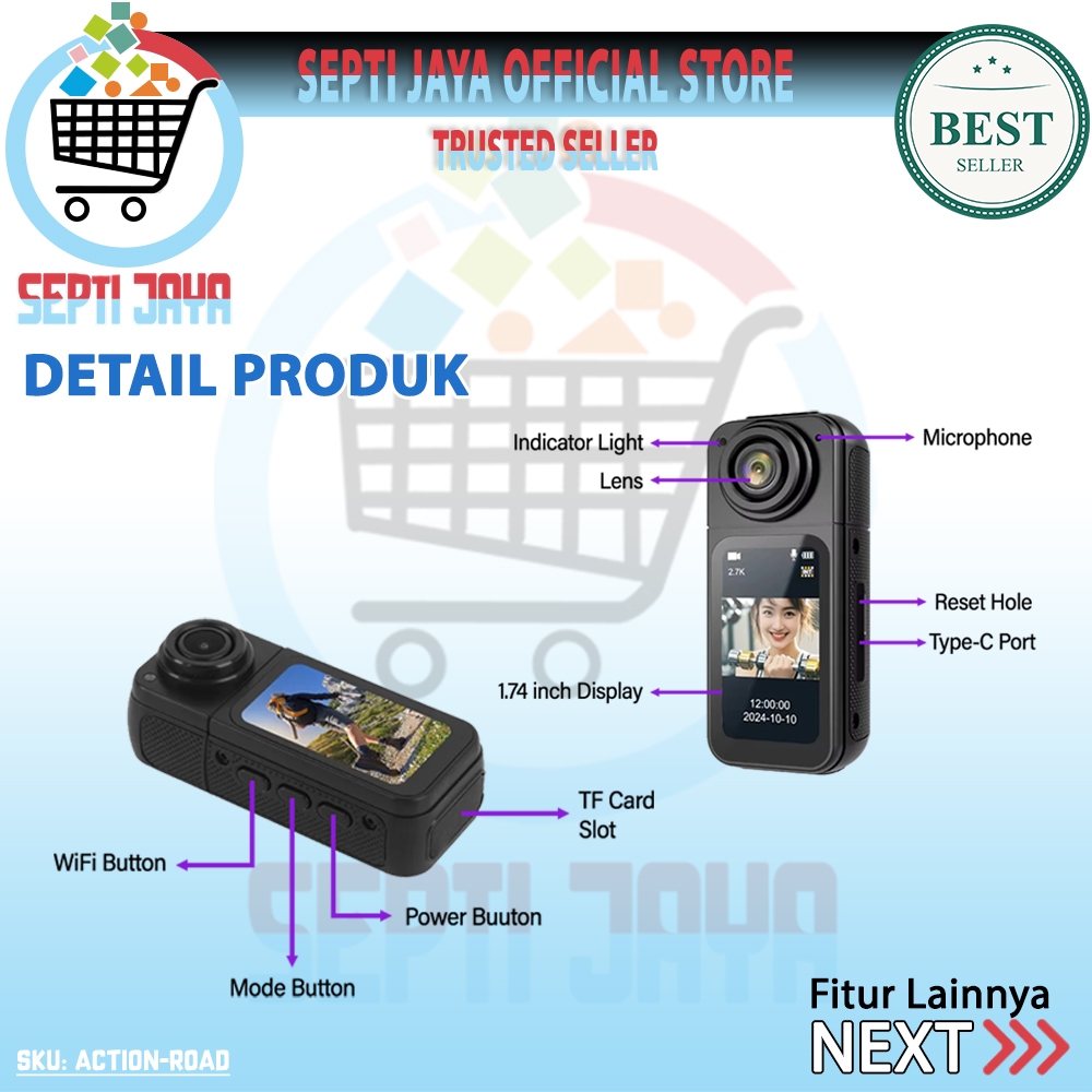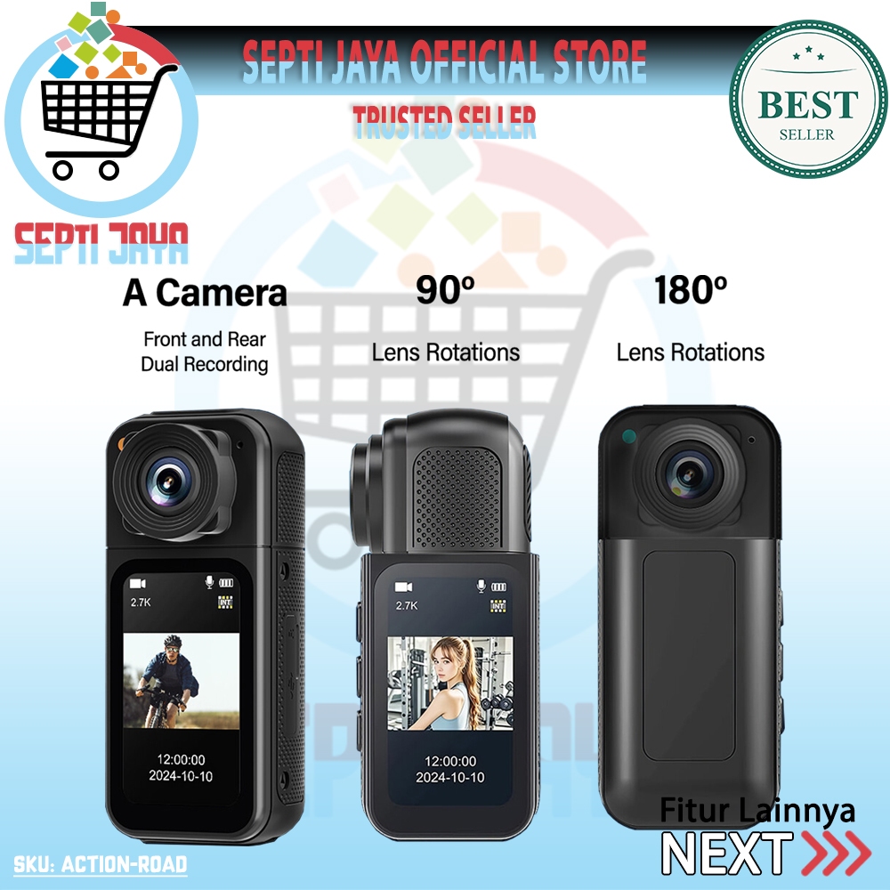 Septijaya Mini Action Kamera Wifi 2.7K UHD 12MP 180° Rotasi Magnetik ACTION-ROAD Spy Camera Roadcam