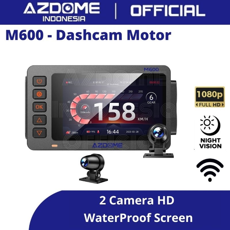 Azdome M600 Dual Camera Motorcycle Dashcam Dash Cam 2 Kamera Motor