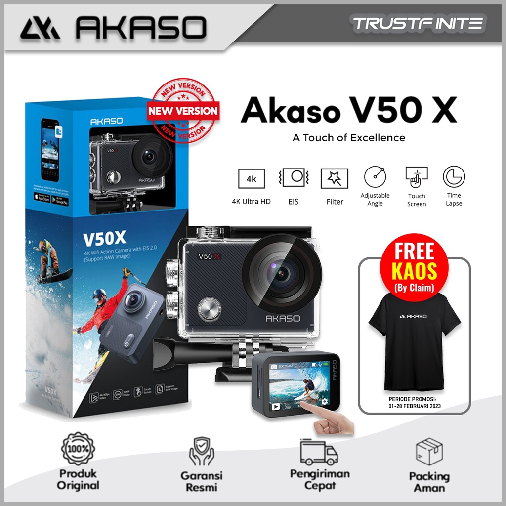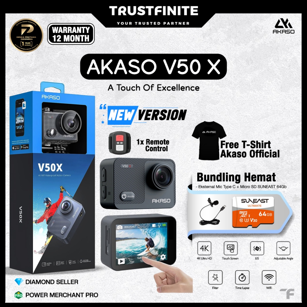 Akaso V50X / V50 X / V 50 X New Version Action Cam 4K 30 FPS Waterproof With Remote Garansi Resmi