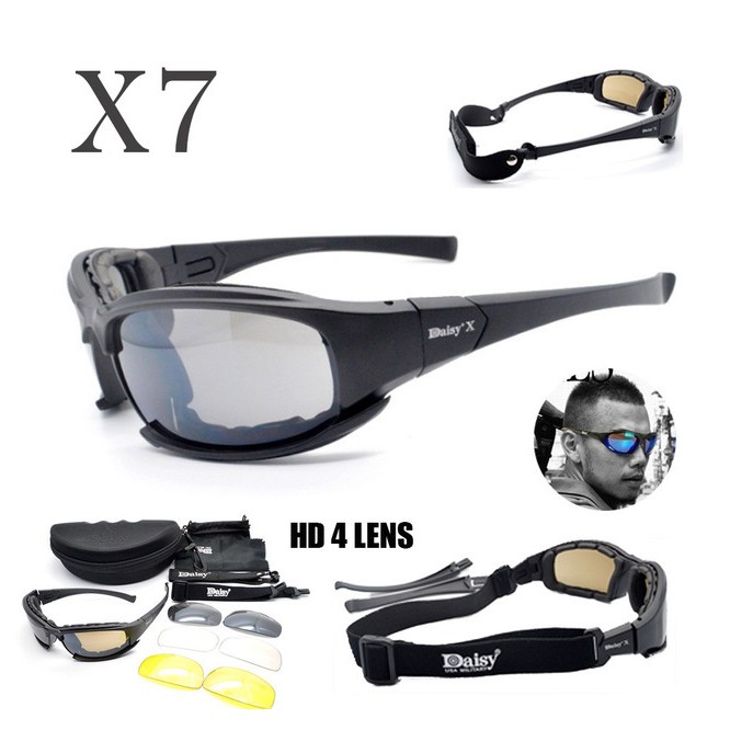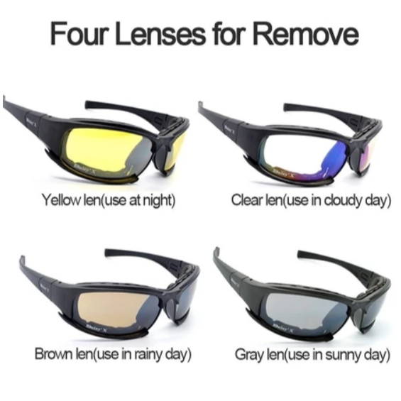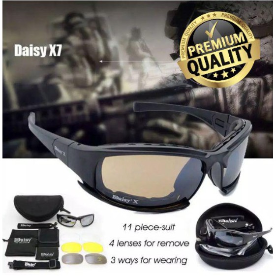 Kacamata Sepeda / Kacamata Pria / Kacamata Motor Daisy X7 4 Lensa Tactical POLICE MILITARY Anti UV