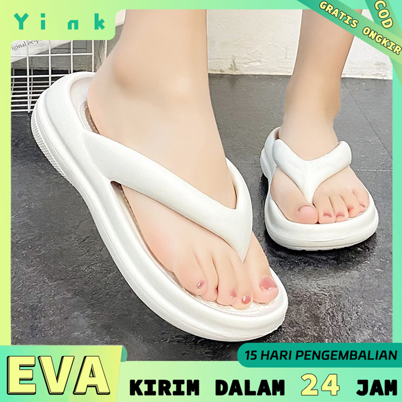 Yink Sandal Jelly Jepit Wanita Korean Soft Slippers Antislip Elastic Empuk EVA Sandal Rumah Karet Kamar Empuk Nyaman