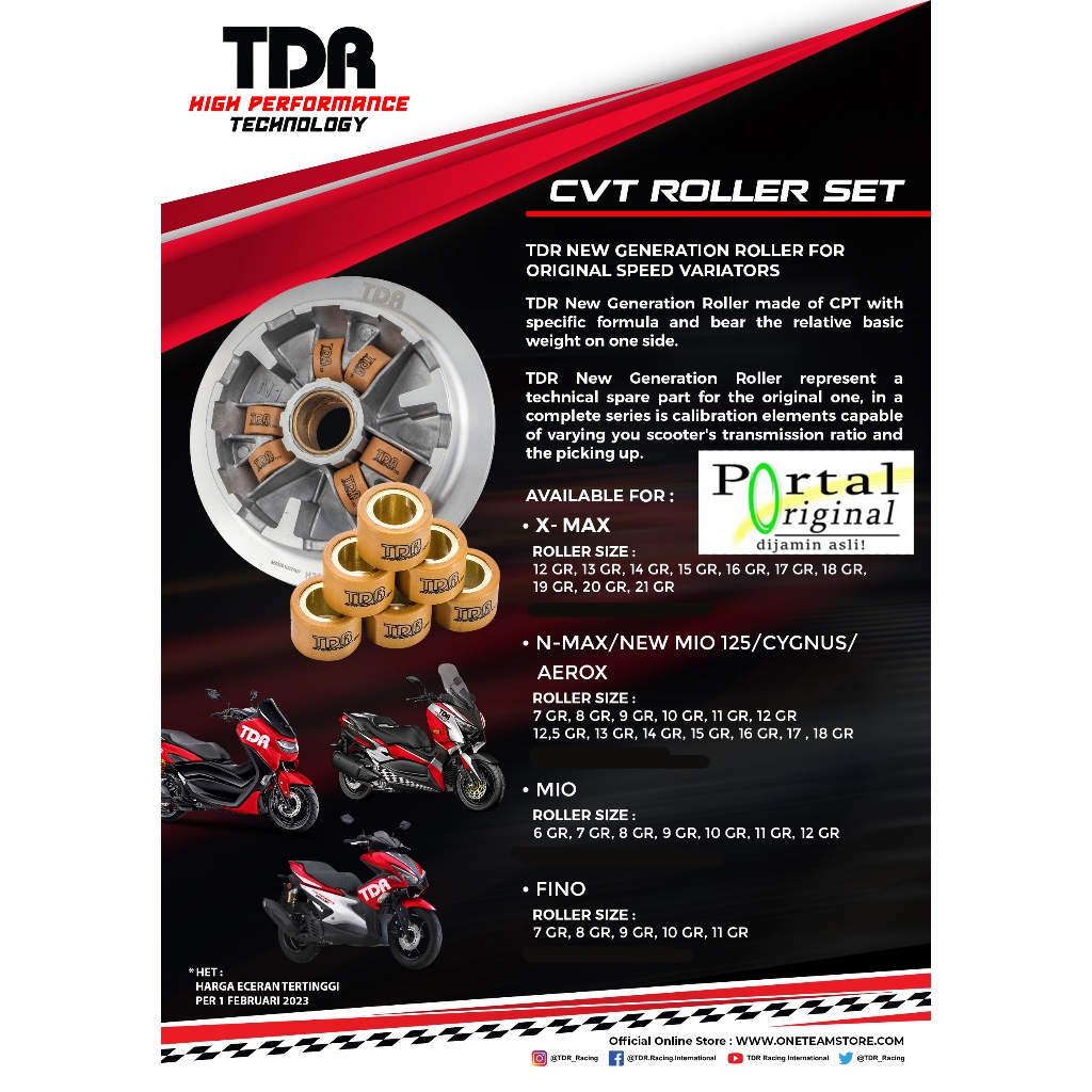Roller TDR Racing Mio Karbu Sporty J GT 115cc Soul Fino Nouvo Xride X ride 7 8 9 10 Gram gr roler loler teflon mix bijian asli original Smile Karburator injeksi FI Matic Yamaha old ori