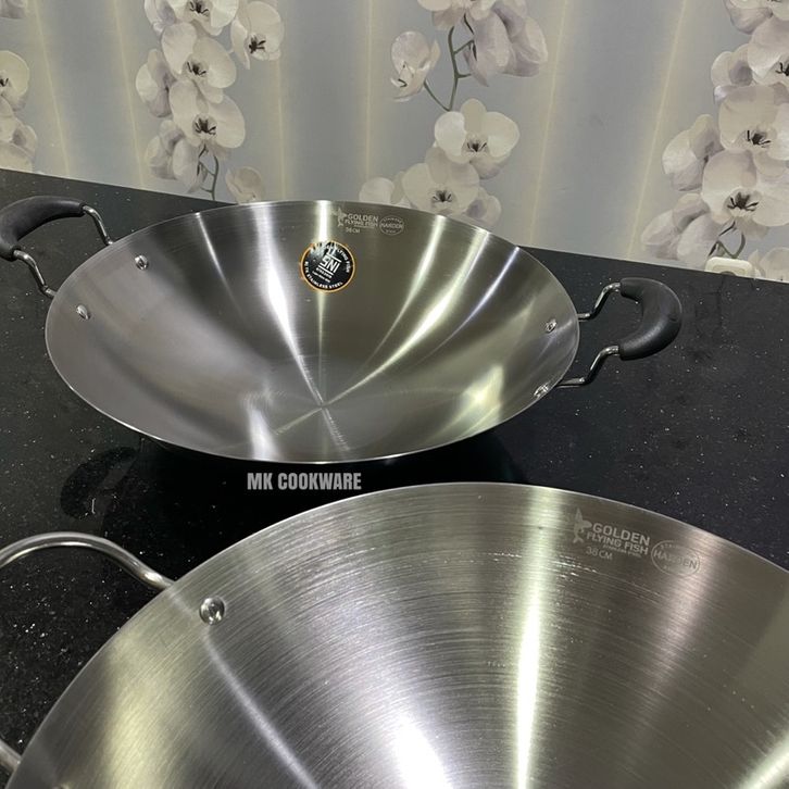 Wajan Golden Flying Fish Original - Kuali Anti Lengket Stainless Harden Steel Diameter 28 30 32 34 36 38 40 42 cm