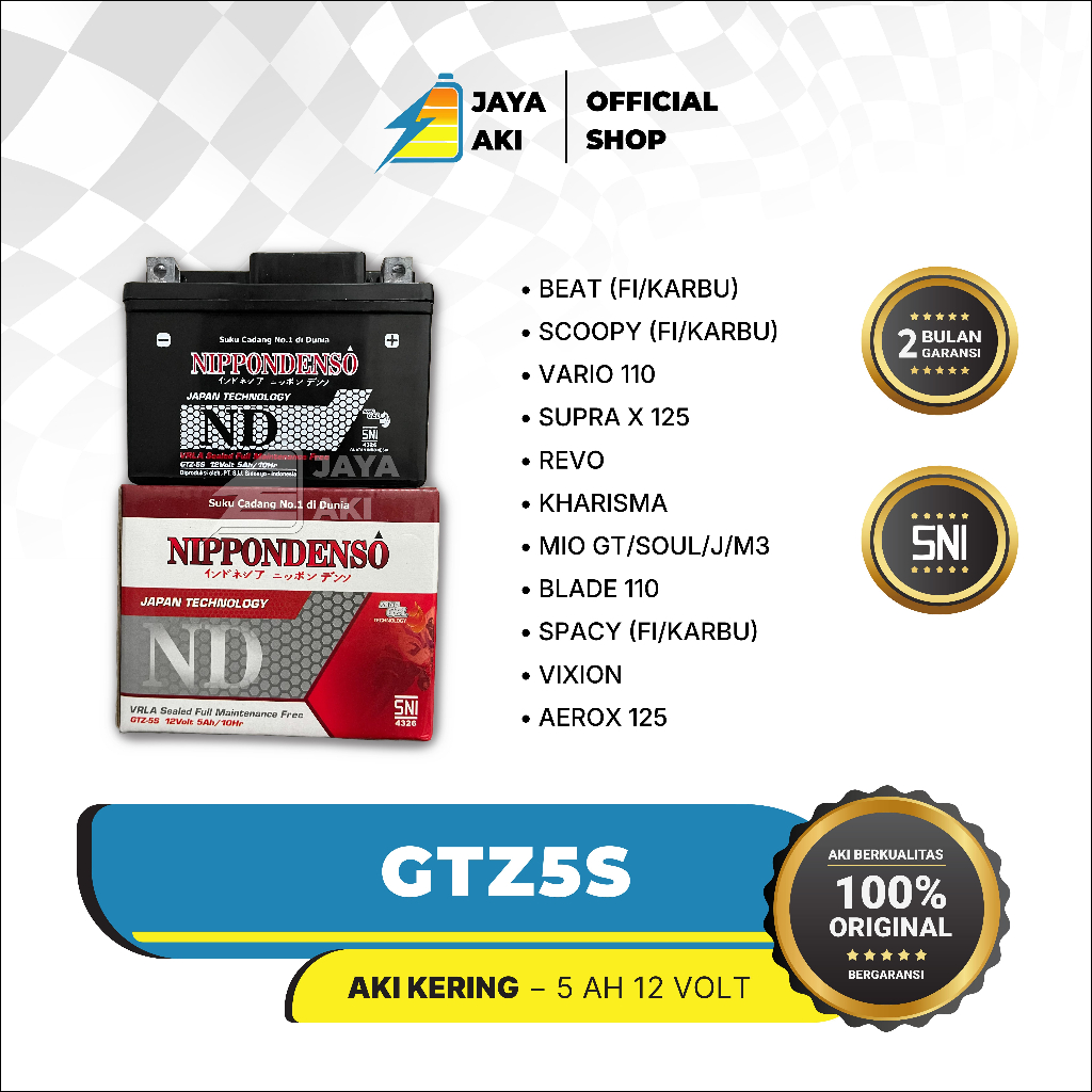 Aki Motor NIPPONDENSO GTZ5S Accu Kering Motor HONDA BEAT VARIO 110 SCOOPY SUPRA X 125 REVO SPACY BLADE NEW MEGA PRO VERZ