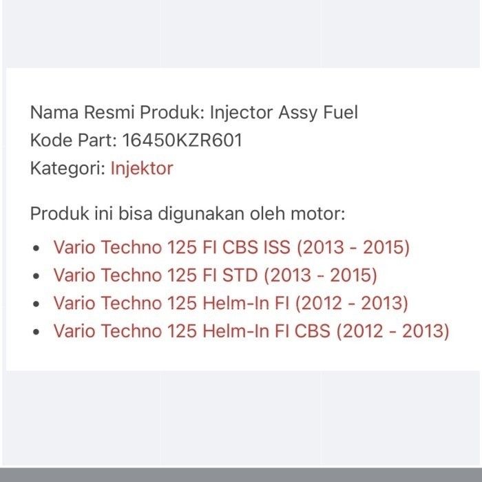 Injektor vario 125 16450-KZR-601 AHM ORI