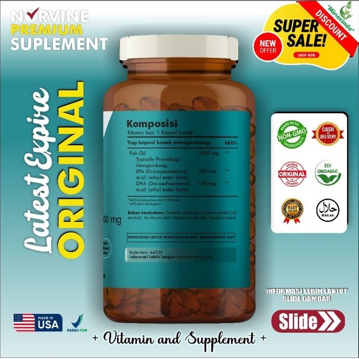 Norvine Omega 3 Fish Oil 1000mg isi 90 - BPOM Made in USA