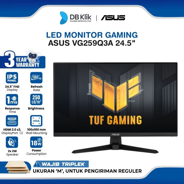 ASUS TUF LED MONITOR GAMING VG259Q3A 25" IPS FHD 180HZ 1MS AMD FREESYNC BUILT IN SPEAKER HDMI DP