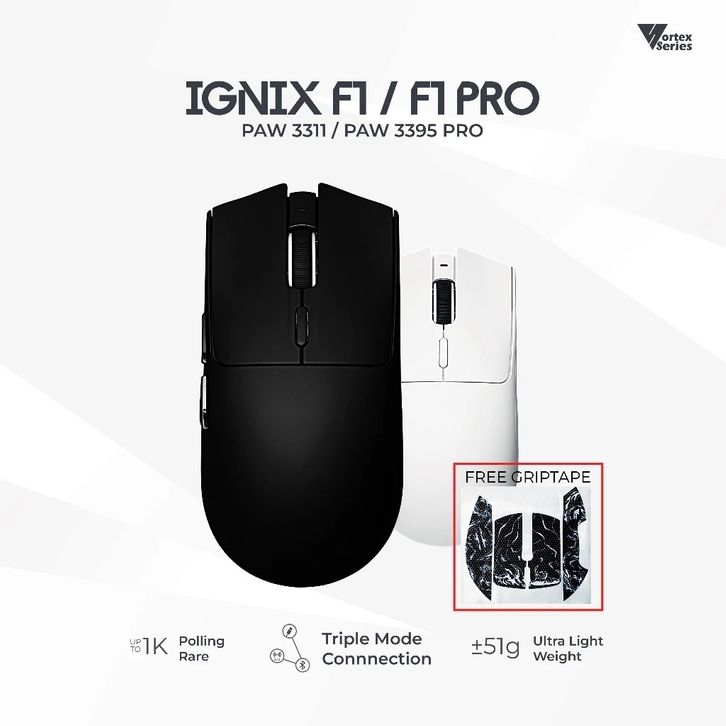 VORTEXSERIES IGNIX SERIES | ULTRA LIGHT WIRELESS TRI E GAMING MOUSE PIXART PAW 3311 / 3395 PRO
