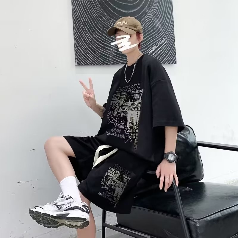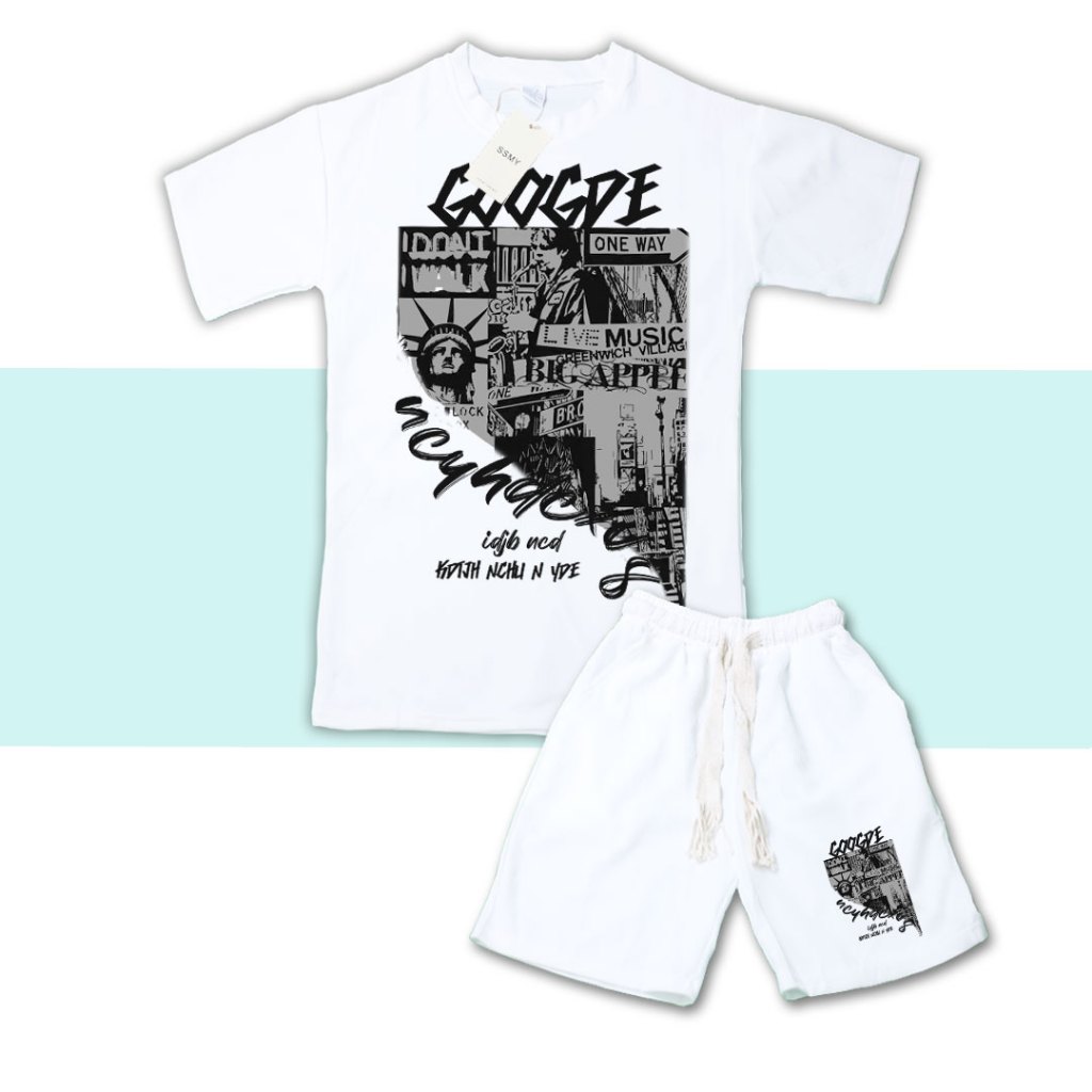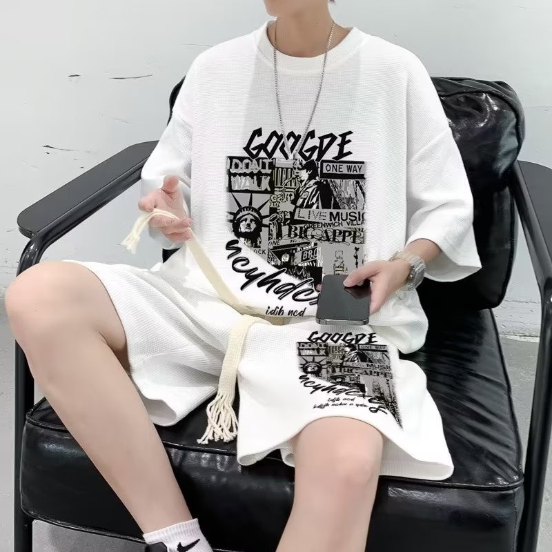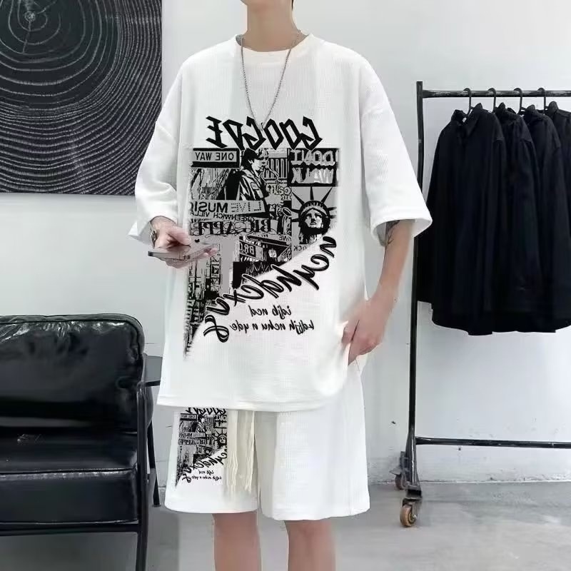 SSMY TZ22 PATUNG LIBERTY AMERICA MOTIF KEREN SABLON ONE SET CELANA PENDEK+KAOS OVERSIZE PRIA & WANITA UNISEX FASHION WAFFLE