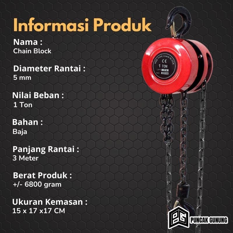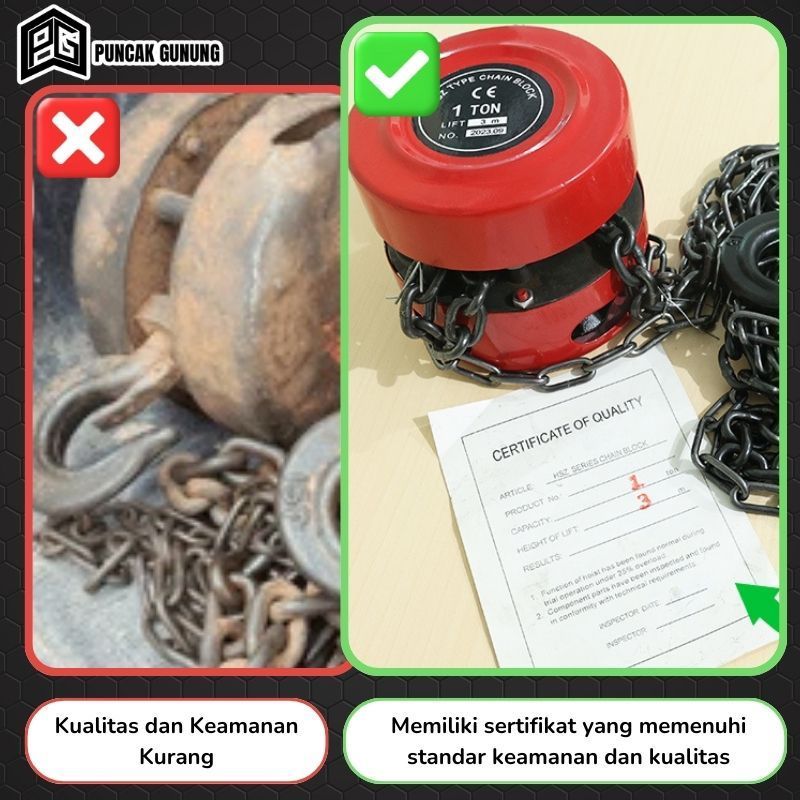 Katrol Chain Block Manual 1 & 2 Ton Rantai Baja Tahan Karat Alat Angkat Barang Kerekan - G2B1/B2