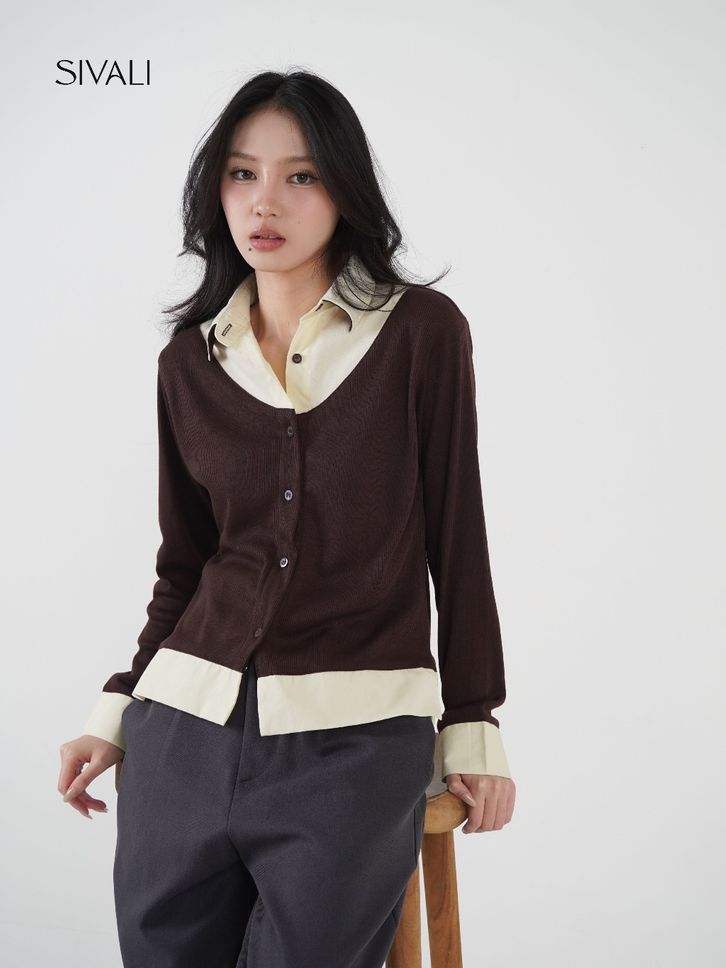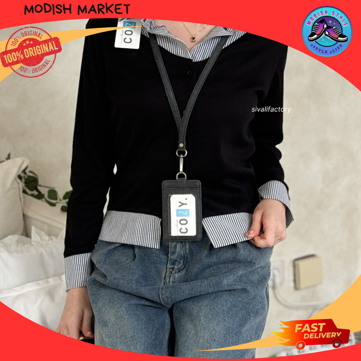 Stripe Collar - Stripe Layer Shirt - Atasan Wanita Kemeja Lengan Panjang