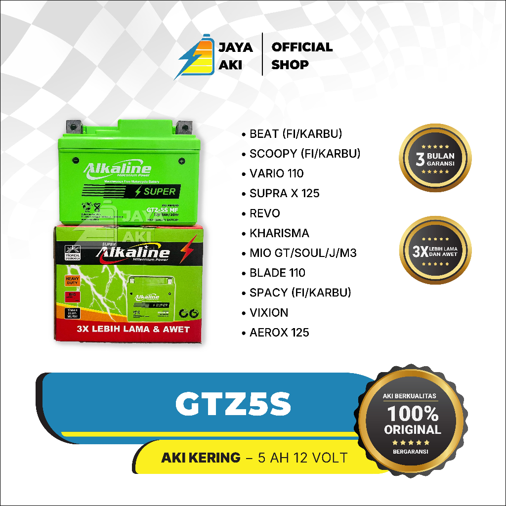 Aki Motor ALKALINE GTZ5S MF Aki Kering Motor Honda Beat karbu Beat FI Vario 110 Supra X 125 Scoopy Spacy Blade Revo New