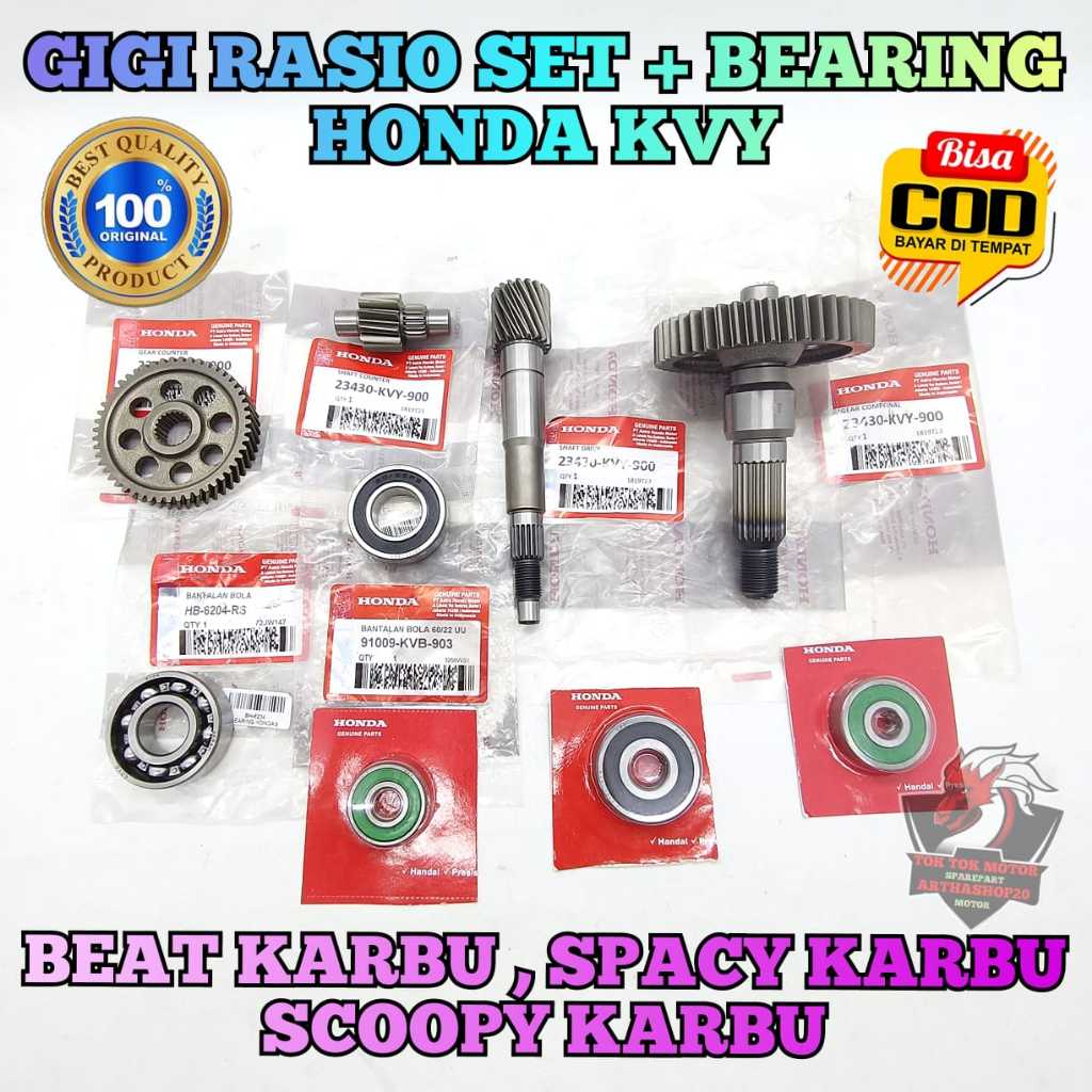 GIGI RASIO SET KVY + BEARING ASLI ORIGINAL HONDA BEAT KARBURATOR , SPACY KARBU , SCOOPY KARBU Gir ger gear ratio box gar