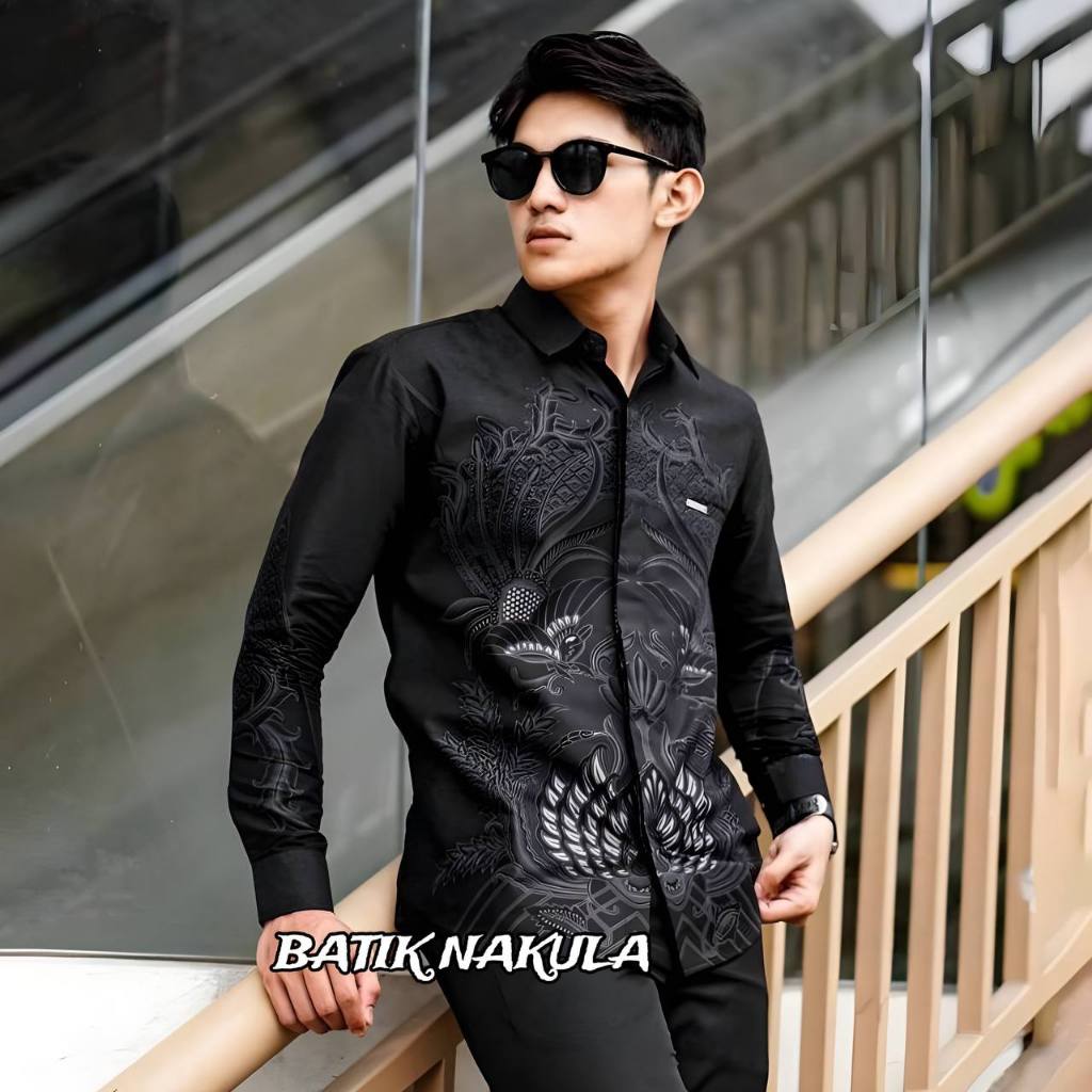 Batik Pria Lengan Panjang BATIK NAKULA HRB026 motif KERATONAN Kode PUSAKA HITAM