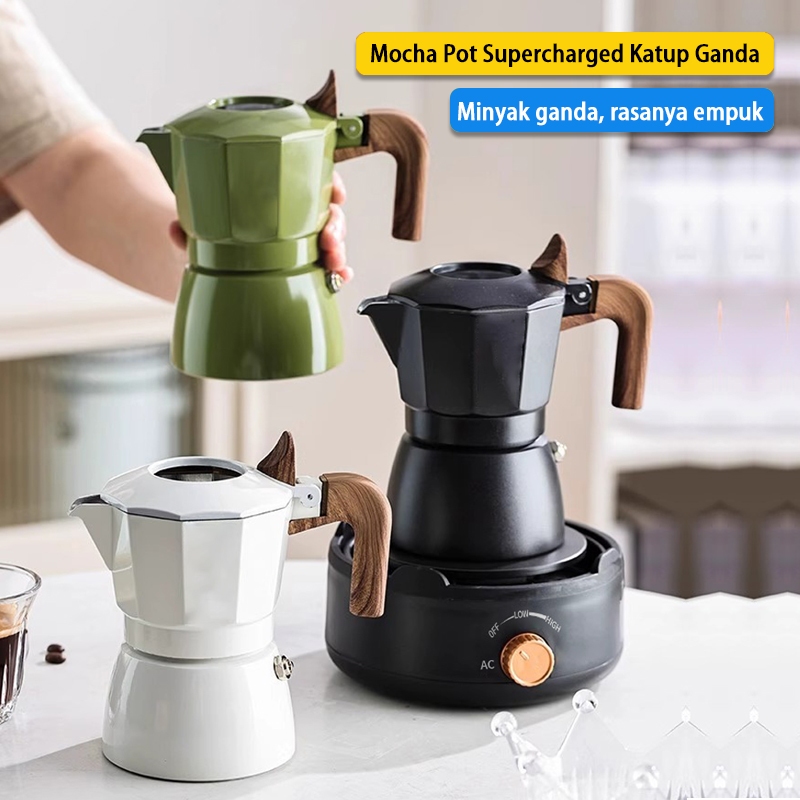 Mocha Pot Espresso Double Valve Moca Pot Tungku Listrik Set Supercharged Katup Ganda Coffee Pot Teko Kopi Mocca Pot 100m