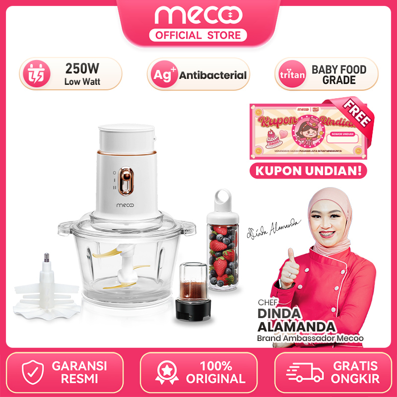 Mecoo Most Aesthetic 5 in 1 Chopper Antibacterial Odorless 250 Low Watt BPA Free white