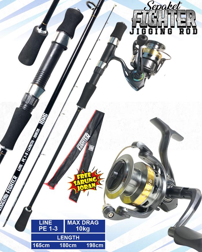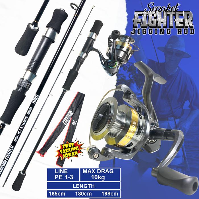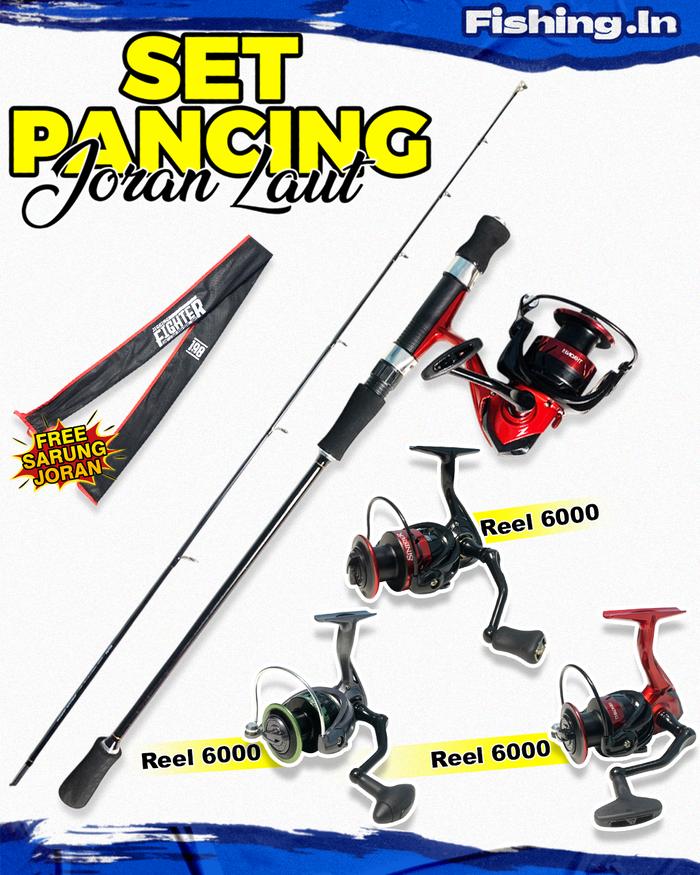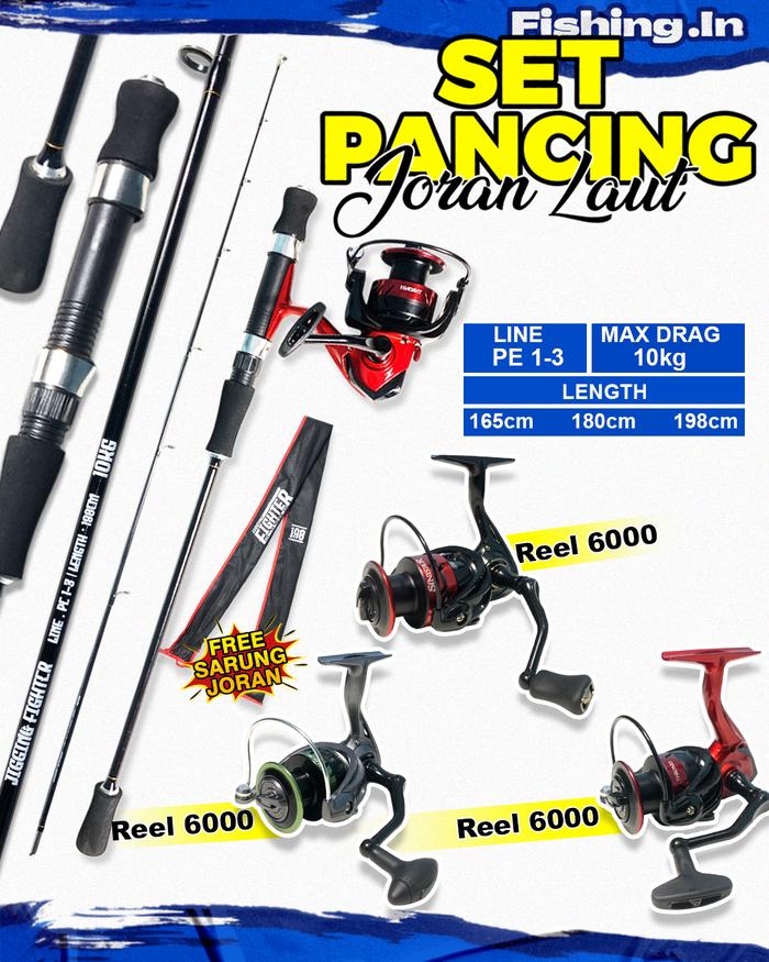 SEPAKET JORAN PANCING LAUT 165cm dan 180cm pe 1-2 Max 10kg Ikan joran pancing & Reel Shikari 6000 atau Ti'tan 1000