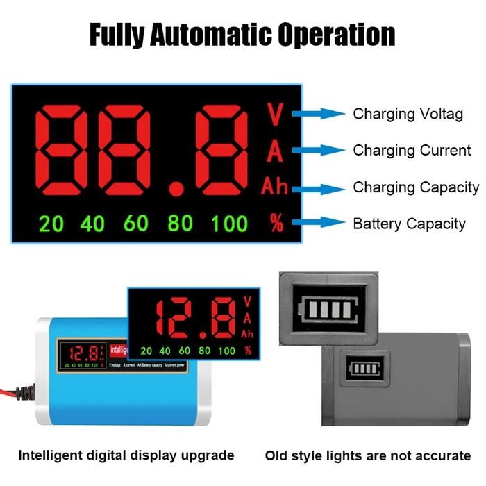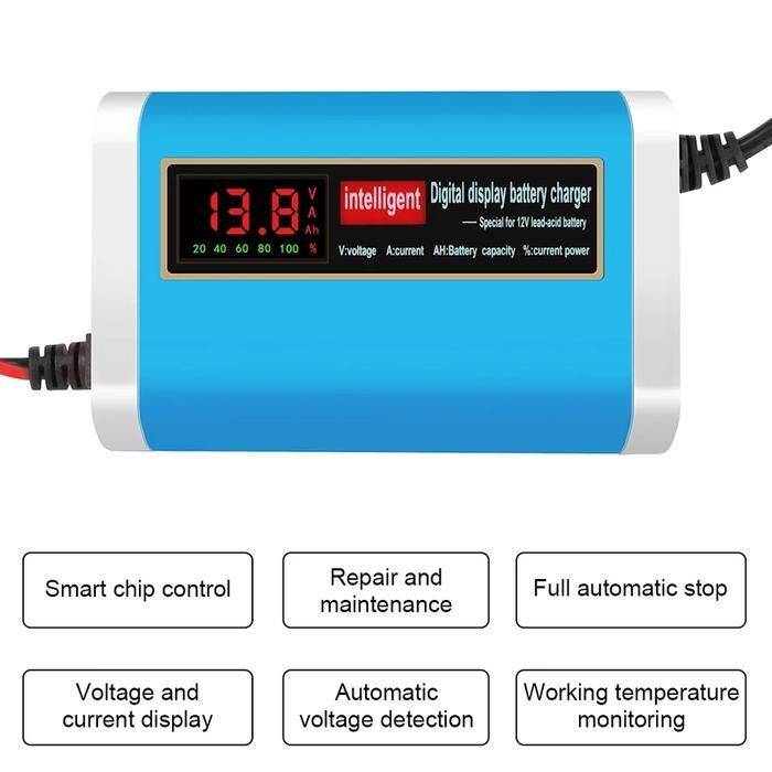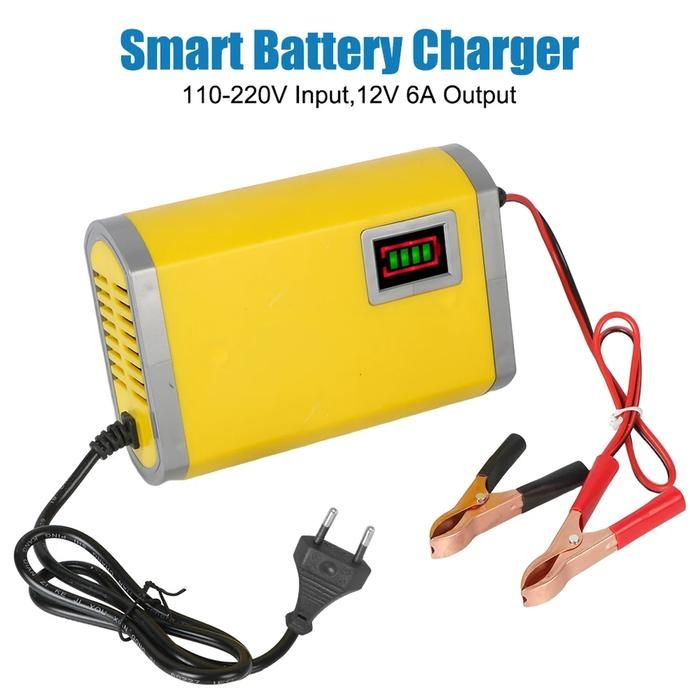 charger aki kendaraan 12V 6A LCD smart-cas accu mobil motor-baterai