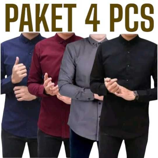 GROSIR PAKET 4 PCS KEMEJA POLOS PRIA LENGAN PANJANG efokd