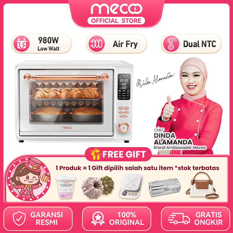 Mecoo Aesthetic Premium Digital Oven Listrik 980 Low Watt 38 Liter Smart LED Air Fryer