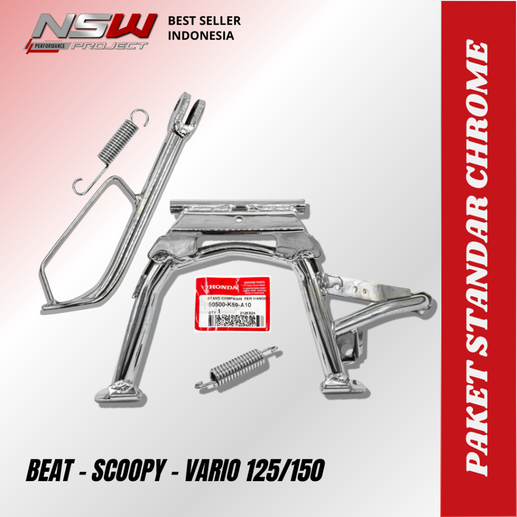 Standar 1 Dan 2 Chrome Vario 125/150 Beat Scoopy Original Standar Samping Krom Beat Karbu PnP Honda