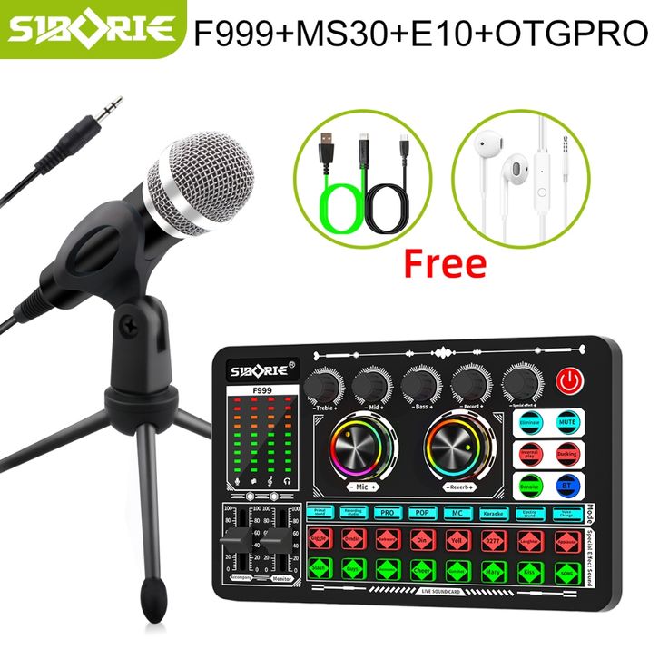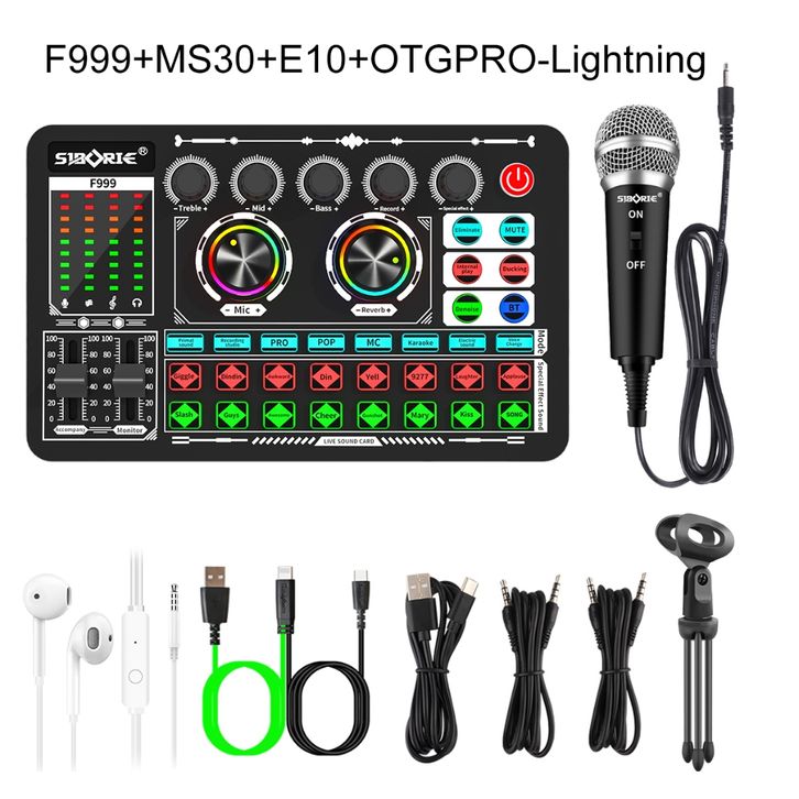 Soundcard FULL SET Siborie F999+MS30+E10 +OTGPRO-Type C/Lightning FullSet 4 in 1 for Live Streaming (FREE OTG&Headset)